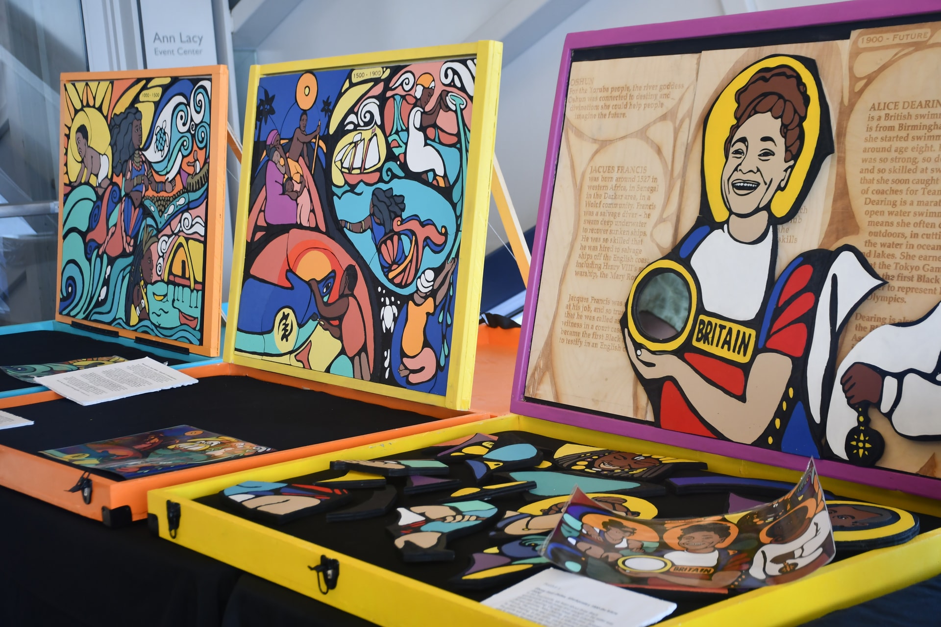 The AfroAquatics puzzles, designed and painted by Oklahoma-based artist Ebony Iman Dallas, are based on real historic information found in rare books and manuscripts from research libraries around the world. The three puzzles form a timeline, illustrating the proud history of Black aquatics and watersports. To support their mission, click here.