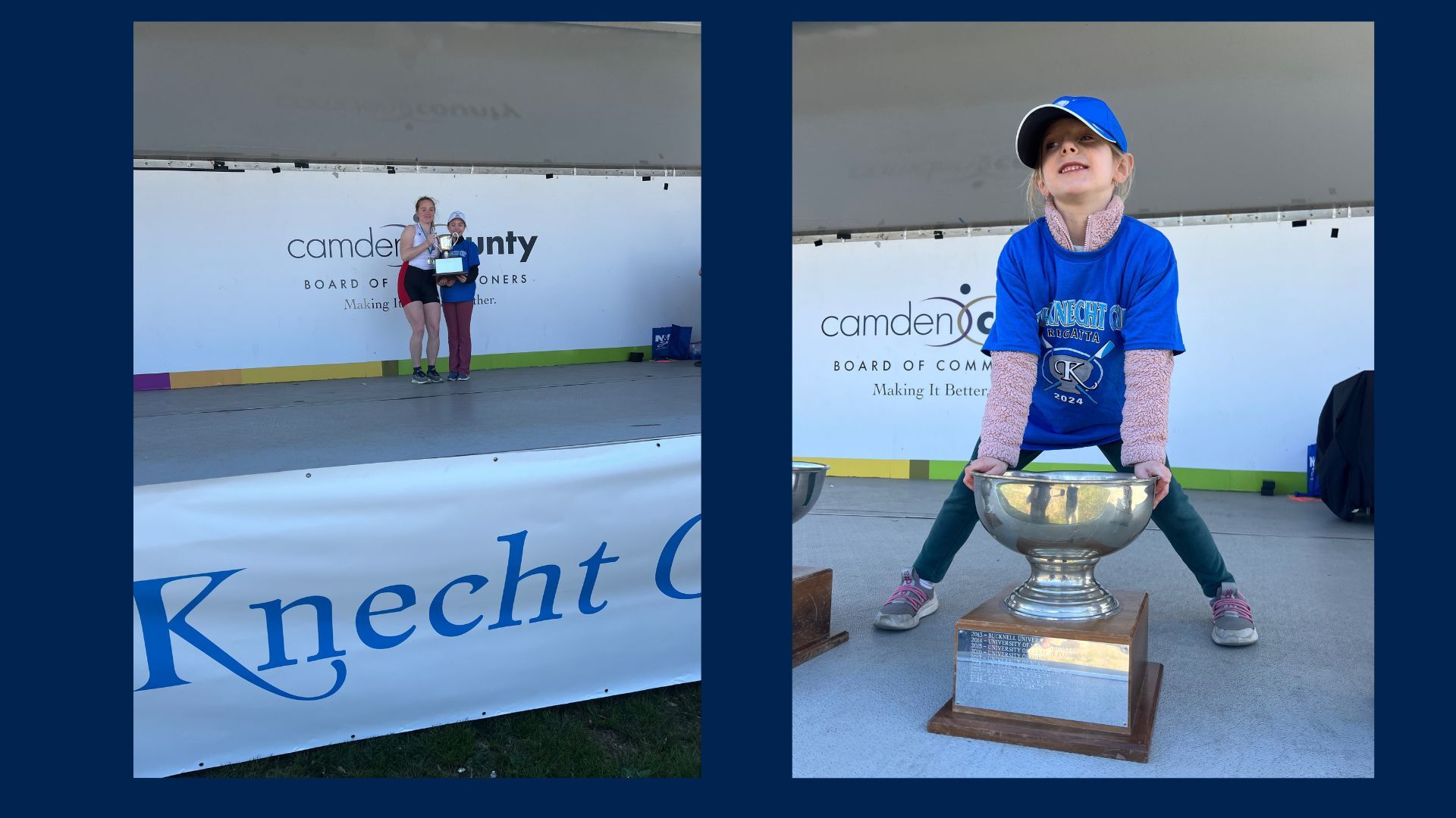 The Knecht Cup Regatta celebrates Bill Knecht - Laura Knecht Blanche’s late father – who is remembered as a significant figure in American regattas, and influential in World Rowing and Olympic regattas. Every year the winners of each event are awarded their medals by the grandchildren of Bill Knecht, and many of Bill’s family members and friends support the regatta in key roles, to make the event a success.