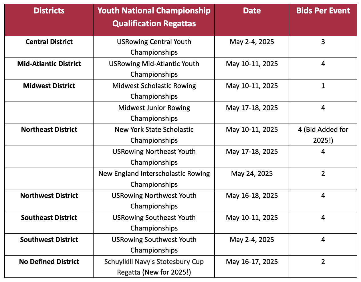 Here are the bid partnerships for the 2025 USRowing Youth National Championships:
